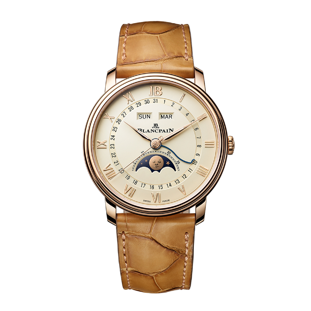 Although the name “Villeret” was officially adopted only in 2003 - after the village where Blancpain was founded - the collection’s roots trace back to 1983, when the maison introduced its smallest complete calendar wristwatch with a moon-phase indicator, powered by Calibre 6395 with a diameter of just 21 mm. The elegant timepiece featured a double-stepped bezel - a design element that has been carried into the novelties. The Villeret collection played a major role in helping the brand and the Swiss watch industry sail through the Quartz Crisis by showcasing the artistry and complexity of classical mechanical timepieces, with the moonphase complication at its centre. Here, the moon has always been depicted with a face, adding a poetic dimension to the passing of time. Over the years, the Villeret collection has expanded from pure three-hand watches to complete calendars, perpetual calendars, tourbillons, carousels, minute repeaters, traditional Chinese calendars, and equation-of-time complications.