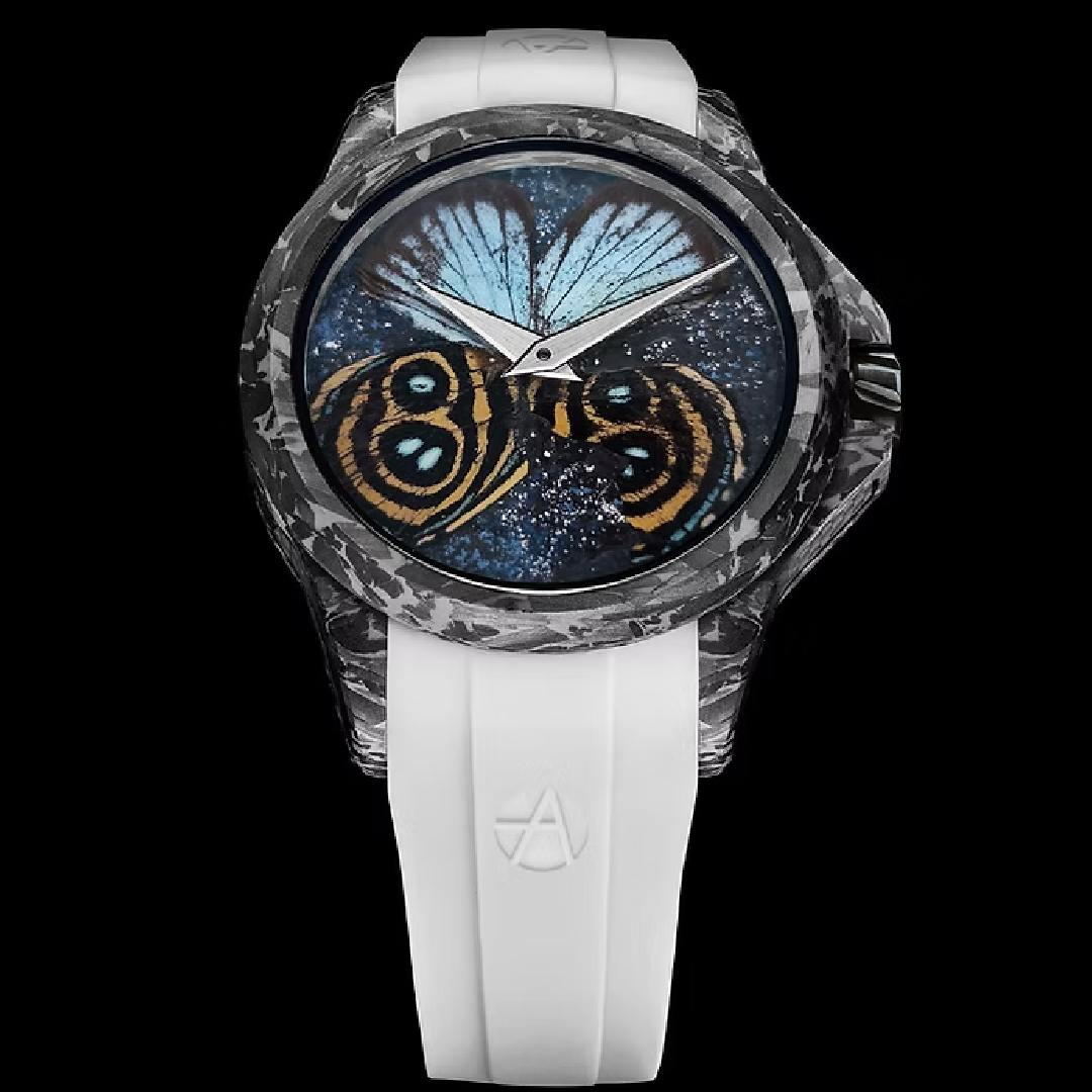 For ArtyA, an ideal customer is someone who can understand the newness in the brand - the materials, movement, and concept. The brand is well known for using unconventional materials like real, ethically sourced butterfly wings or coprolite (fossilised dinosaur dung). That’s crazy shit! Arpa says, “Because nobody needs a watch to tell the time, so you need to bring different values. And the good thing about watches is that it’s very philosophical. It’s linked to the time we are here on this planet. It is an emotion; it’s also a tradition.”
