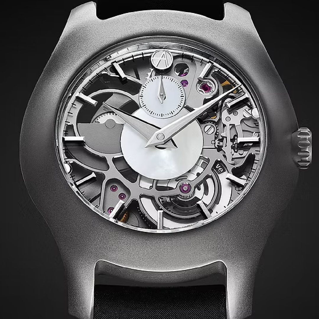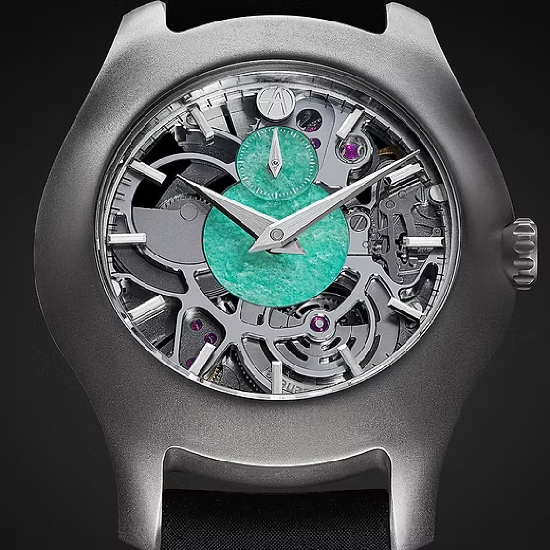 In the middle of this year, ArtyA launched its Luminity Wavy collection of 40 mm sculpture-like watches crafted in Grade 5 titanium or sapphire. With this debuted its very first micro-rotor movement, the AMR-02, developed in collaboration with Swiss-based movement maker Télôs Watch S.A. The ultra-thin calibre measures 3.6 mm and features a tungsten micro-rotor for improved winding efficiency. It beats at 4 Hz or 28,800 vph, and its impressive 82-hour power reserve comes from twin barrels working in parallel, each equipped with longer, finer springs that release energy more smoothly for a steadier and more linear output.