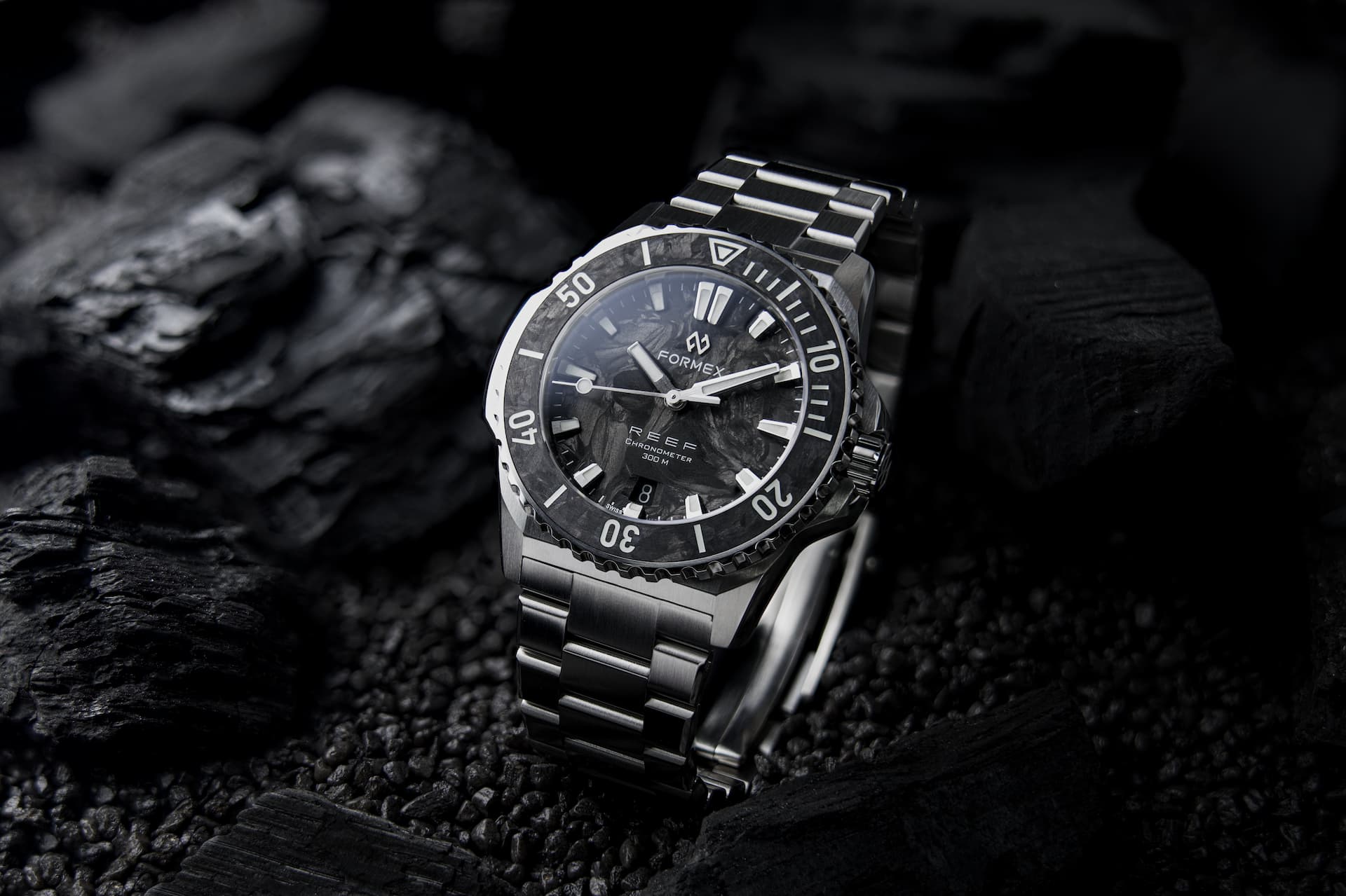 A key feature of the Reef collection is versatility. The interchangeable bezel system allows users to switch between forged carbon, ceramic, and steel options. The watch is also compatible with multiple strap choices, including stainless steel bracelets, rubber, leather, and nylon straps. All options are designed with quick-release mechanisms and Formex’s patented fine adjustment systems.