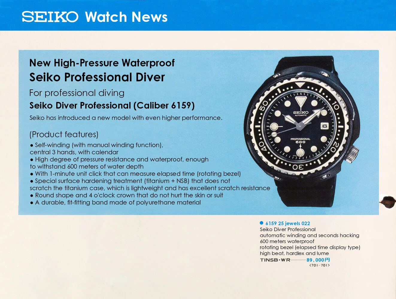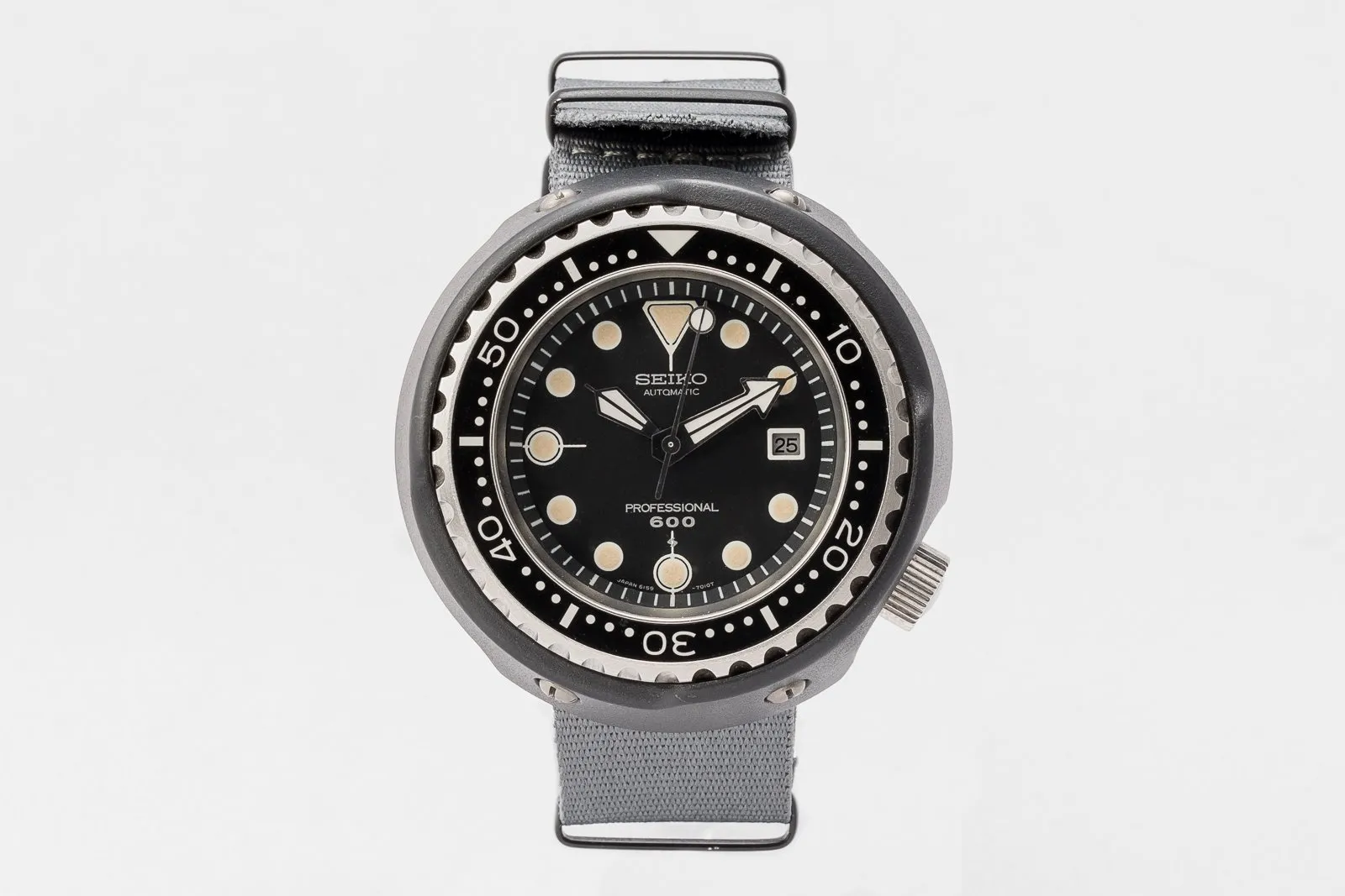 The result appeared in 1975 as the reference 6159-7010, a watch so unconcerned with convention that it barely resembles one. The movement was sealed inside a monocoque titanium case, eliminating a traditional caseback entirely. Around it, Seiko wrapped a massive, ceramic-coated shroud designed to absorb shocks and protect the watch from impact. There were no lugs. No exposed edges. Nothing delicate enough to be sacrificed.