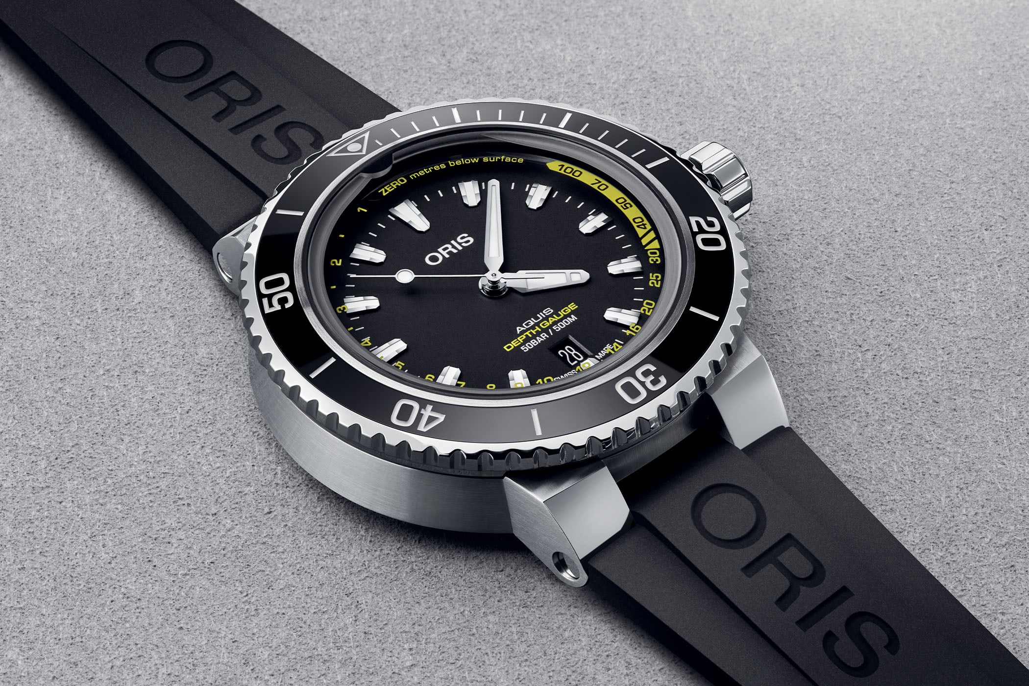 Every dive watch in history is united by a single imperative: keep the water out. The Oris Aquis Depth Gauge does the opposite.