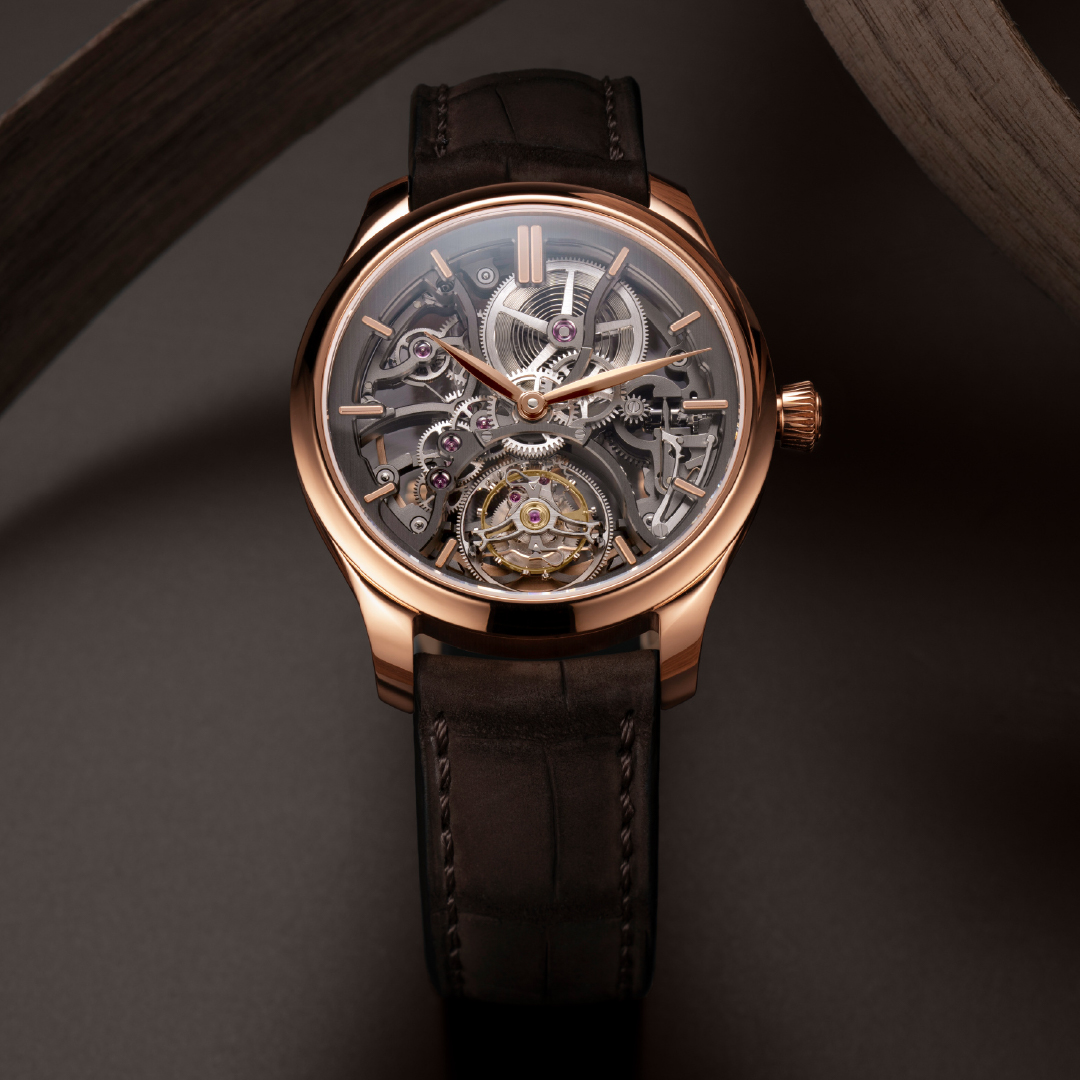 H. Moser & Cie. has unveiled a new model in its elegant Endeavour line, the Endeavour Tourbillon Skeleton in 5N red gold. The fully skeletonised timepiece exposes the mechanical architecture while preserving structural balance and legibility — an aesthetic central to H. Moser & Cie.