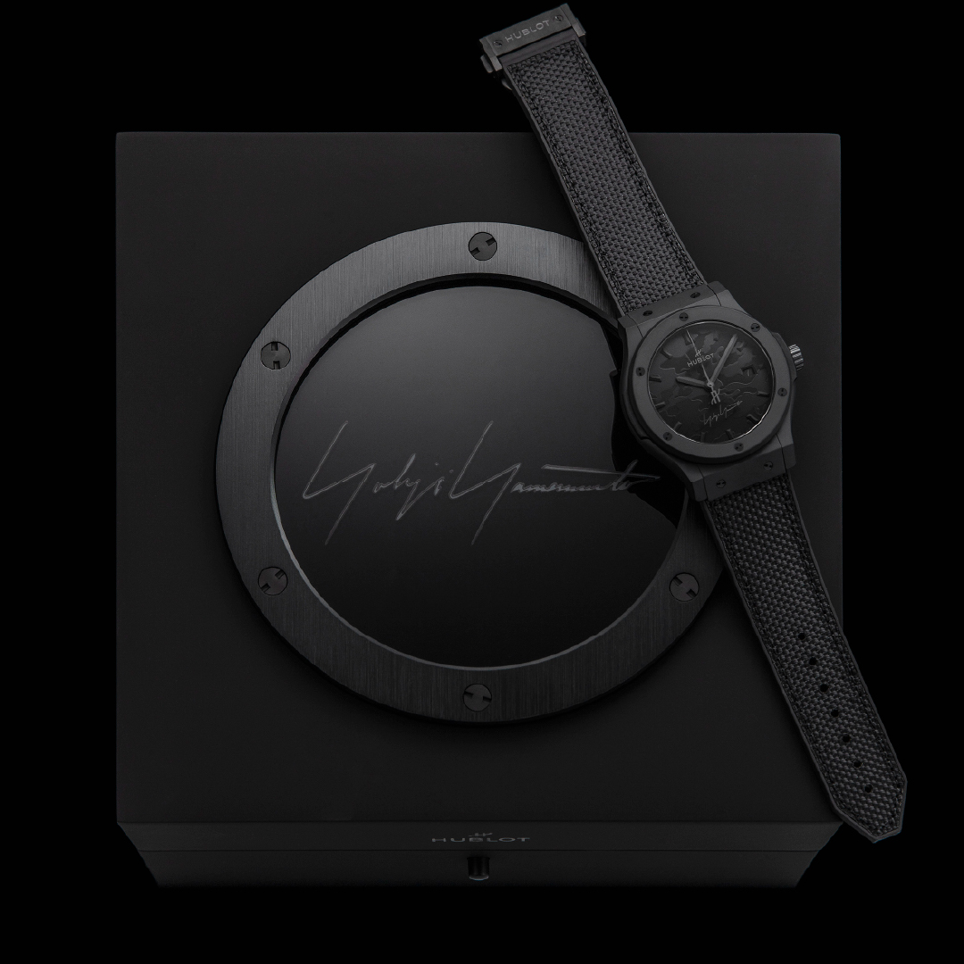 Completing the design is a fabric-and-rubber strap inspired by Yohji Yamamoto’s couture approach, secured with a black-plated steel deployant clasp. The watch is presented in a custom all-black box bearing Yohji Yamamoto’s signature.